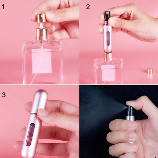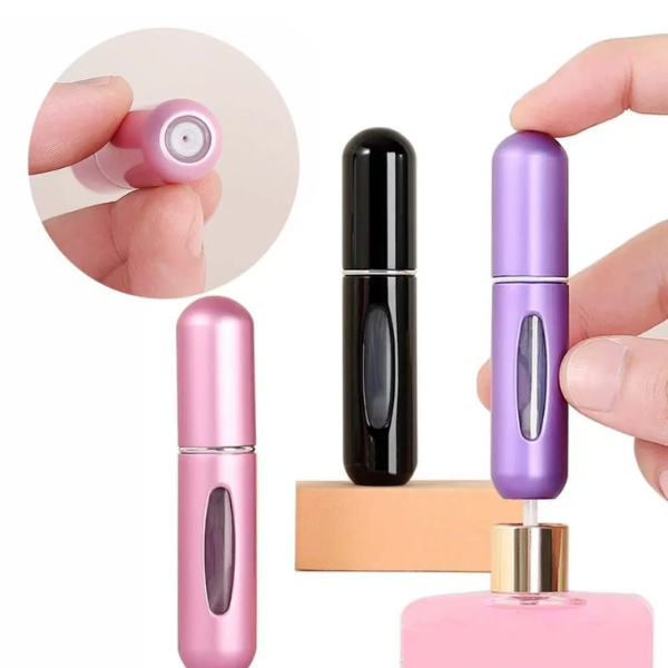 Llevá tu perfume favorito siempre con vos, sin ocupar espacio. Este mini perfumero recargable de 5 ml es ideal para tener en la cartera, mochila o neceser.